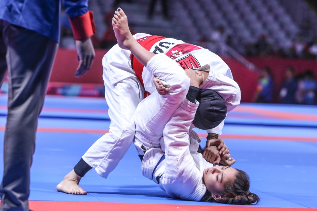 Cambodia’s Jessa Khan was merciless throughout the day in Jakarta. She sailed through the division with a strong performance. She debuted against Thailand’s Swanan Boonsorn, finished with an armbar inside the triangle. Then she repeated the weapon against Iran’s Nahid Pirhadi in the quarterfinals. The place in the gold medal match came with a narrow win over Jenna Napolis, from the Philipines, beat 1-0 on advantages. Khan’s opponent in the final would be Marha Alhinaai, from the UAE, who also had a great showing in Jakarta. She beat Bayarmaa Munkhgerel from Mongolia on advantages in the quarterfinals and then Vietnam’s Thi Minh 14-0 in the semifinal. The gold medal match was short lived as Jessa put her guard to catch Mahra in a triangle that eventually became an armlock that forced the tap.
