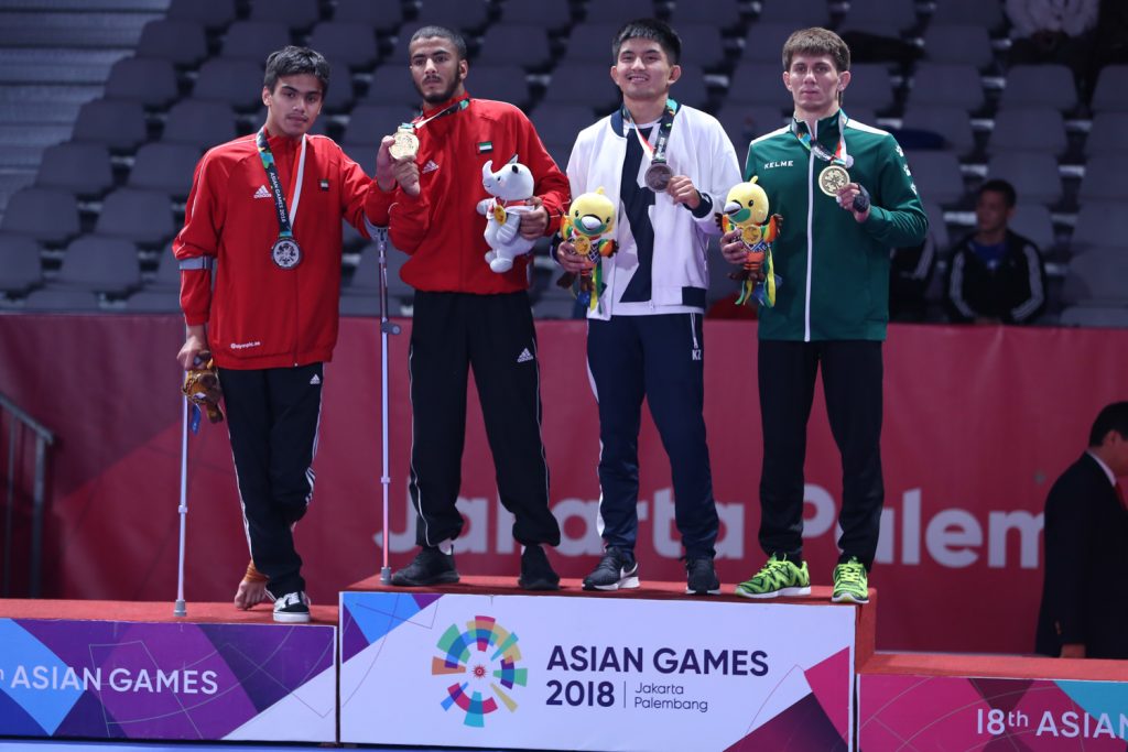 Torokan Bagynbai could not hide his happiness after the final whistle blow went out in the final match against the UAE’s Talib Alkirbi. One takedown early in the match was enough to build a 2-0 lead that secured him the gold medal. Before that, Bagynbai beat Thailand’s Banpot Lertthaisong 4-2 in the semifinals, outscored Turkmenistan’s Jelilmuhammet Hojamyradov 4-2 in the quarterfinals, and narrowly beat Kazakhstan’s Mansur Khabibulla on advantages in the eight finals. With such a steady campaign, no wonder the gold medal rested in his neck at the end of the day.