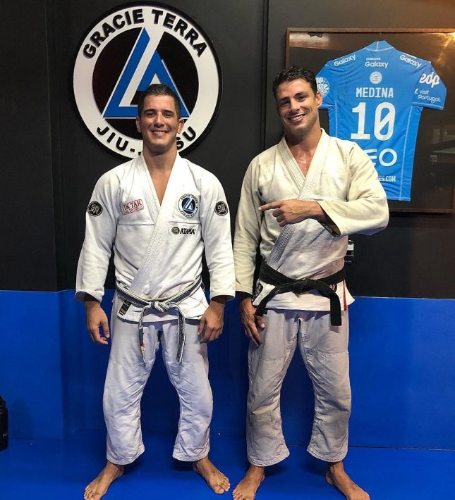 Na abertura de seu novíssimo espaço em Copacabana, nosso GMI Vitor Terra recebeu mais de 50 amigos, entre faixas-corais e vermelhas, e deu pistas de como encara as novas empreitadas da carreira. “Nunca tive uma vida de luxo mas jamais me desviei do caminho certo, por conta do que aprendi em casa. Por isso agradeço hoje aos meus pais, que estão aqui”, discursou o faixa-preta, arrancando aplausos de todos no dojo montado no primeiro andar da academia Equipe 1. “Eu tomo café da manhã, almoço e janto Jiu-Jitsu. Casei como uma Gracie que me apoia muito e respiro Jiu-Jitsu 24 horas por dia, tudo que faço é sempre olho no olho”, acrescentou.