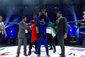 In the Jiu-Jitsu Co-Main Event, Khaled Al Shehhi and Leonardo Mario found themselves evenly matched throughout the duel, which lasted five rounds of three minutes. Khaled started with a takedown, followed with a submission attempt and, when that didn’t work, used the single-leg to press Leonardo against the cage wall. Leonardo applied his pressure on Khaled’s guard, but the UAE powerhouse had a better run in the duel, using his technique to attack on top and even reach the side. When it was all said and done, Khaled had shown enough of his skills to convince the majority of the referees and conquer the title with a split decision.
