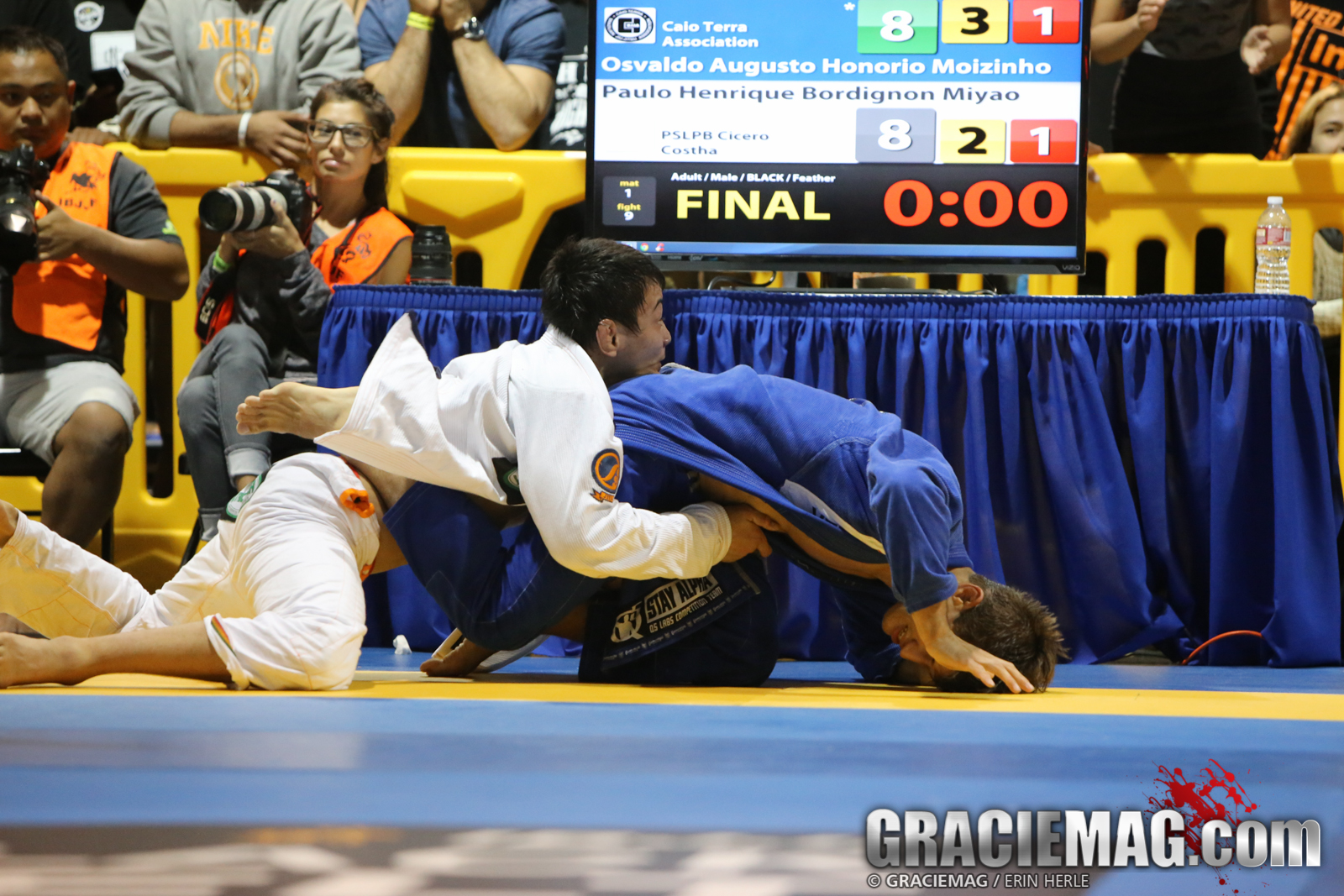 After a exchange of sweeps and sweep attempts, Moizinho got a last-second inversion to tie the score 8(3)-8(3).