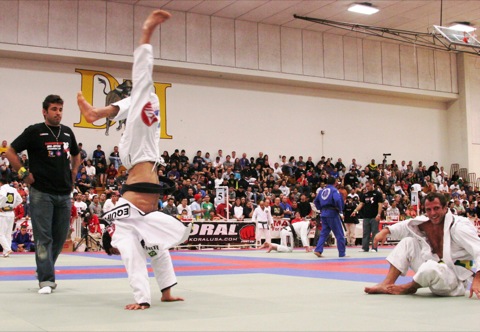 Cena 1: O lutador de porte esguio, cabelos despenteados e queixo em forma de U finaliza todos os seus três adversários até a final: Thiago Gaia e Vinicius Magalhães, o Pezão (campeão absoluto na faixa-marrom do último Mundial), dão três tapinhas, vítimas de estrangulamentos pelas costas. Já Rafael Lovato pede pra parar, tendo o braço esticado num armlock.