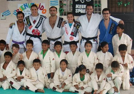 A dupla feminina da Alliance não para. Depois de mais uma vitória em 2010, na seletiva para o World Pro, Gabi Garcia e Luanna Alzuguir visitaram, nesta segunda-feira, o projeto social da equipe no Equador, dirigido pelo nosso GMA e professor Fernando Soluço. As meninas fizeram a entrega de 60 kimonos patrocinados pela Keiko e empresários locais.