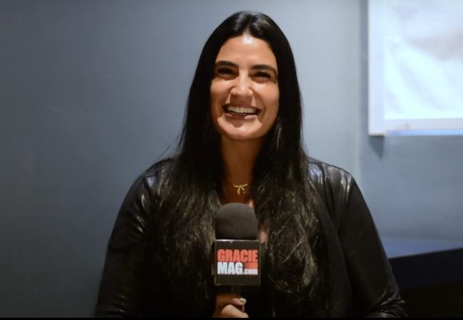 Repare que o adversário encaixa a guarda De la Riva e o professor Igor Silva faz o legdrag. Em seguida, Igor mantém a pegada na calça do adversário, impede que ele dê o rolamento para trás e chega no controle lateral do cem-quilos. Quando o oponente tenta girar, ele acompanha o movimento e mantém a posição de domínio.