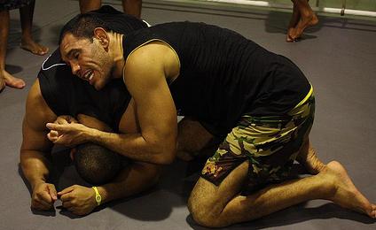O Cigano chega hoje, também estou treinando com o Feijão, com o Anderson e todo o pessoal do CT. E para essa parte de chão também treinei com o Ronaldo Jacaré, que sabe muito nessa área. O negócio é esse, treinar duro, que assim há menos dificuldades na hora da luta. Tento trabalhar bastante a zona de desconforto para estar apto a segurar um amasso na hora da luta e buscar a finalização.
