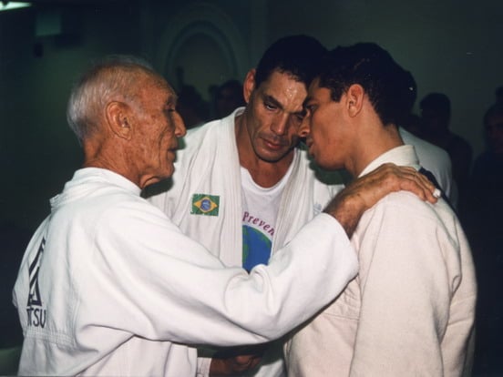 Helio Gracie com Relson e Royler em seminário antes do UFC 1, em 1993. Foto: Arquivos da família via Kid Peligro