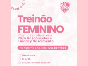 Em alusão ao Outubro Rosa, a Federação também promoverá, no próximo dia 19 de outubro, um Treinão Feminino Especial, ministrado pelas professoras Eliza Vasconcelos (foto acima) e Lindacy Nascimento, ambas multicampeãs e referências no BJJ pernambucano.