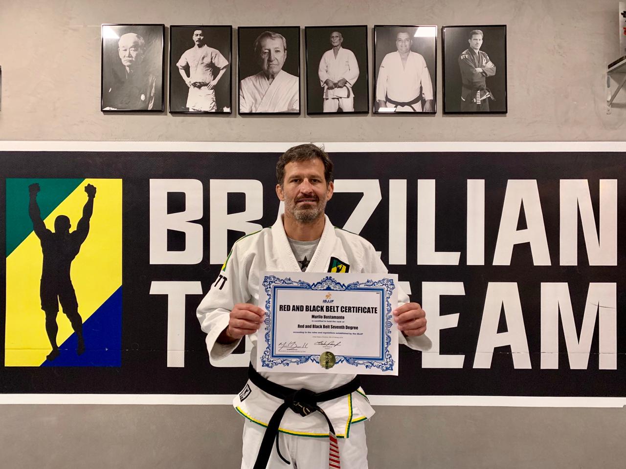 Campeão mundial de Jiu-Jitsu e primeiro brasileiro campeão do UFC. Mais de 100 faixas-pretas formados ao longo de sua trajetória como professor e fundador de uma das academias de artes marciais mais bem-sucedidas do mundo, que tem como objetivo principal disseminar os benefícios do esporte. Já são 42 anos dedicados a arte suave, 31 deles ensinando. Tanto tempo de estrada rendeu a Murilo Bustamante a faixa-coral de Jiu-Jitsu, que corresponde ao sétimo grau. Emocionado, o líder da Brazilian Top Team (BTT) relembrou o seu início na arte suave e a longa jornada até conquistar a nova graduação.