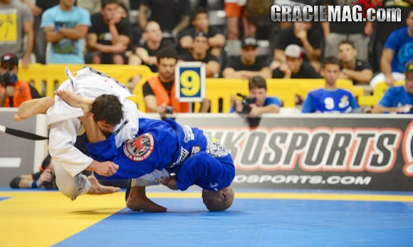 No MMA, as pessoas têm o maior pavor de ficar de costas no chão e sempre dão as costas para ficar em pé. Como venho do Jiu-Jitsu, isso para mim é um prato cheio. Depois que peguei as costas, fechei o cadeado e lacei o pescoço para finalizar. A pegada das costas para mim é a essência do Jiu-Jitsu. Treino bastante na grade, na parede, e com as luvas. A luva atrapalha muito e é preciso se acostumar com elas. Quanto ao treino apoiado na parede, é uma faca de dois gumes. Pode ser usada a seu favor ou contra você.