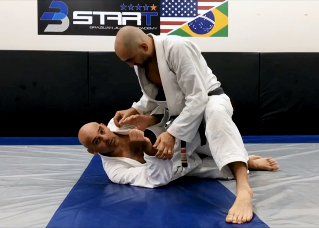 Na posição, o faixa-preta mostra como anular a progressão da passagem, travando o joelho do oponente. Em seguida, com a perna oposta da passagem, ele projeta o professor Rafael Gordinho para frente, e faz o pêndulo para levantar e ganhar as costas. Na segunda opção, quando o adversário trava o braço, Gordo usa a pegada como vantagem para girar o eixo e terminar por cima.