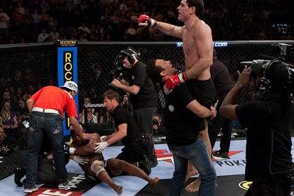 Acho que tive uma certa vantagem por causa da minha altura e a luta foi mais ou menos como estava esperando. Imaginava que ele teria dificuldade em me acertar por causa do meu tamanho. Então trabalhei muito o jab para esperar a hora certa de ir para o chão. Consegui surpreendê-lo com aquela joelhada, algo que nem eu estava esperando. Foi uma coisa de momento e depois apenas aproveitei a chance e parti para dentro.