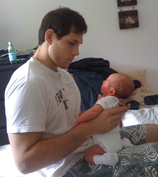 Tristan chegou com 59cm e 4,1kg e retribuiu o carinho com muitas horas sem dormir, enganando a mãe Anna e o pai que, na luta de chão, raramente é ludibriado. “Trabalhoso, viu. Quem me falou que recém-nascido só come e dorme me enganou direitinho”, Roger diz, comentando que precisou adiar para setembro ou mesmo outubro a luta de MMA que faria no Strikeforce americano, a terceira de sua carreira, a primeira fora do Japão.