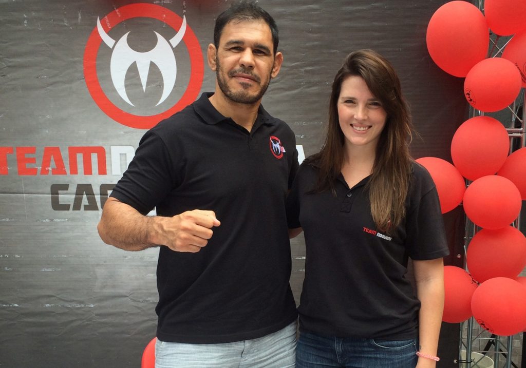 Rogério Minotouro e a empresária Karen Ferro na Team Nogueira Cachambi. Foto: Divulgação