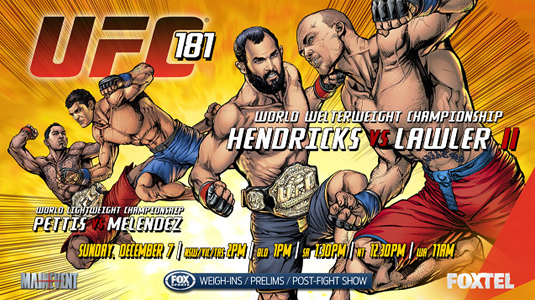 UFC 181: Hendricks vs. Lawler II Results Main Card (on Pay-Per-View) Robbie Lawler def. Johny Hendricks by split decision (48-47, 47-48, 49-46) Anthony Pettis def.…