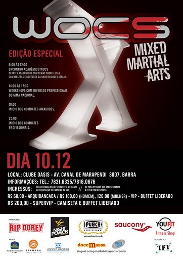 Com transmissão ao vivo pelo Combate, o WOCS prepara uma grande festa para a sua décima edição, no dia 10 de dezembro, no Clube Oásis, na Barra da Tijuca.